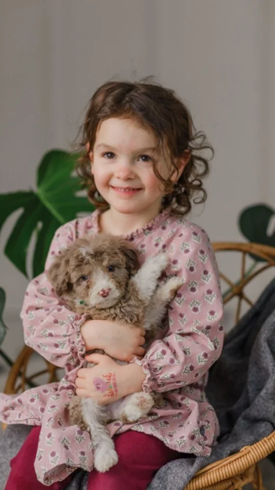 Every puppy is nurtured in our home & studio to become a calm, confident partner for families who value health, connection, and predictability.