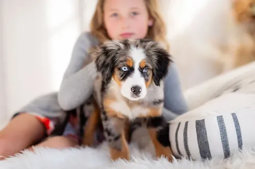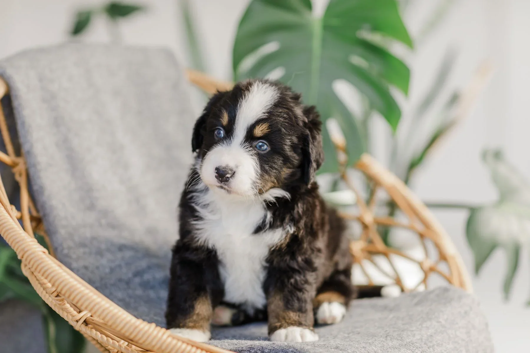 Their gorgeous, fluffy coats tricolored merle coats—make them incredibly attractive pets; they’re big and protective. With the addition of the Australian Shepherd to the Bernese Mountain Dog, these dogs have a more balanced energy level with increased versatility.