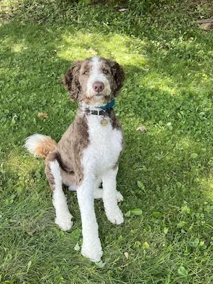 50lb Brown Tuxedo Golden Mountain Doodle Male from Rae x Rico
