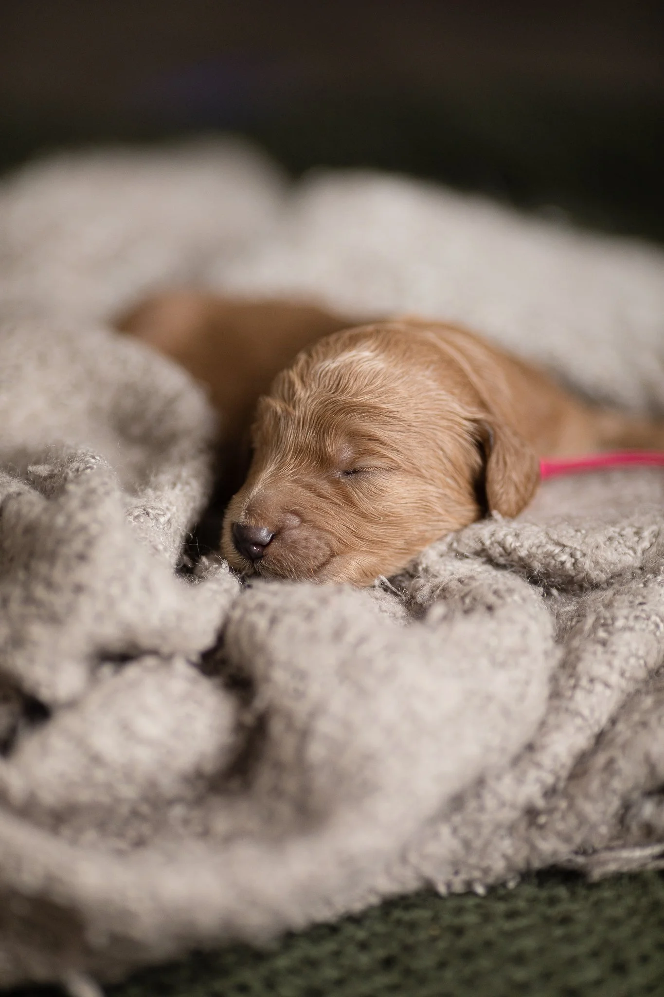 Introducing our upcoming F2 Mini Goldendoodle litter from Mozzi and Copper! These puppies will carry on the cherished blend of Poodle and Golden Retriever traits, with some pups showcasing the fluffy doodle coat and others inheriting the sleek retriever look.