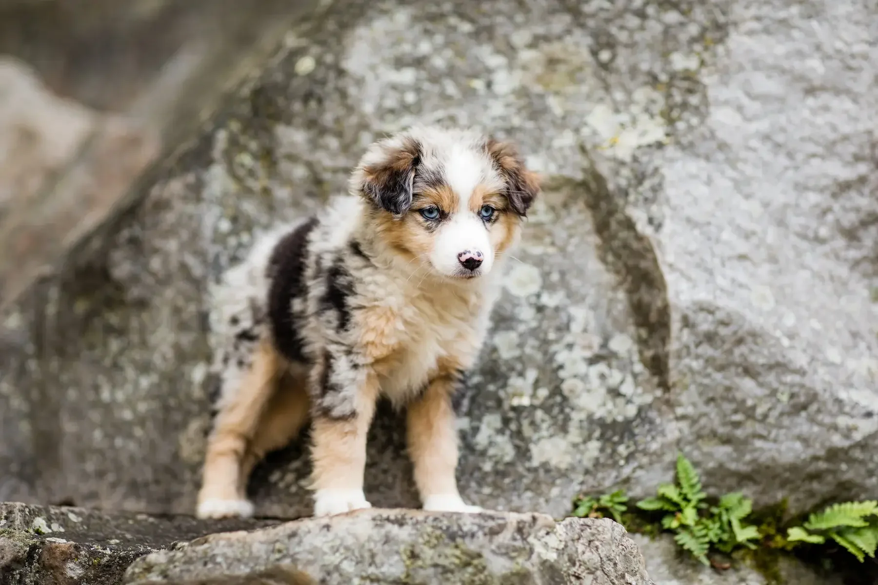 Australian Shepherds: Often seen in Merle variations, with blue eyes enhancing their distinctive appearance.