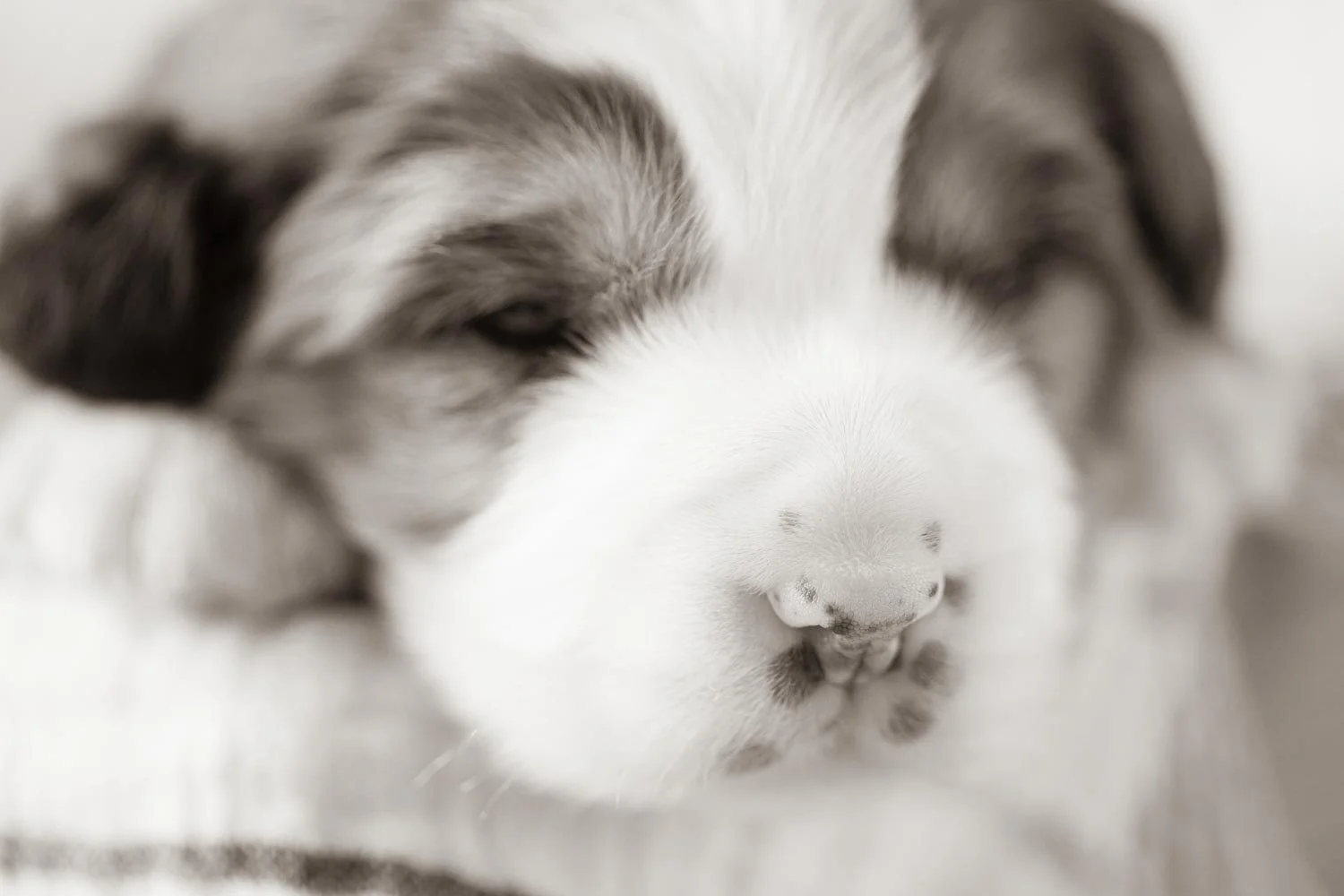 Professional Puppy Photo of a 2-Week old puppy’s nose. © James Stokes